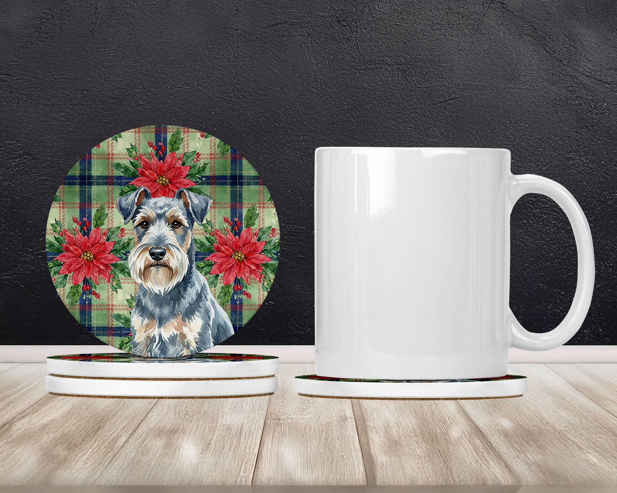 Blue Lakeland Terrier Christmas PoinsettIas Large Sandstone Coasters Pack of 4 Absorbent Round Coasters Decor Gifts for Men or Women, 4 in, Multicolor
