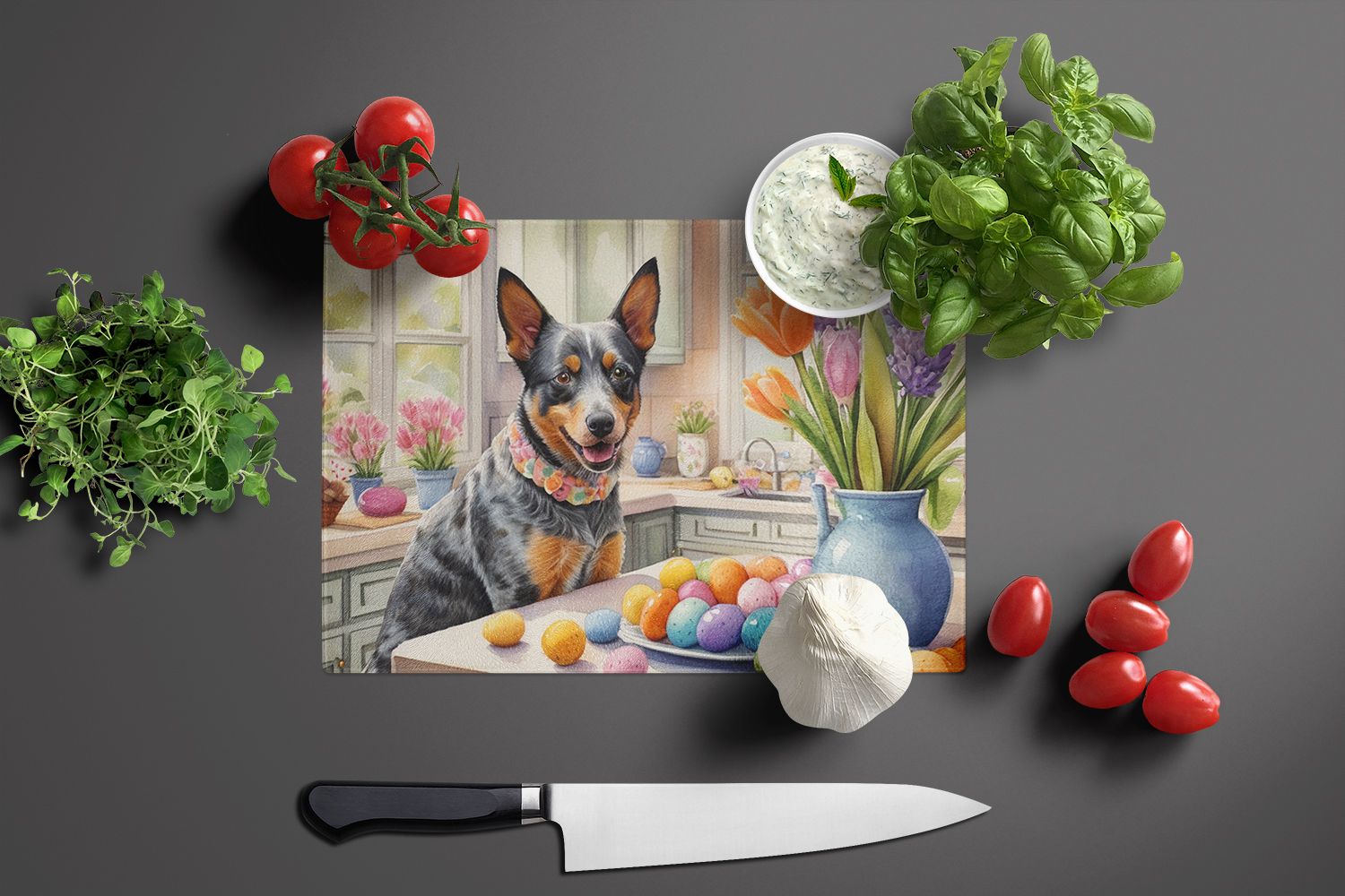 Home > NEW Decorating Easter Australian Cattle Dog Glass Cutting Board Decorative Tempered Glass Kitchen Cutting and Serving Board Large Size Chopping Board