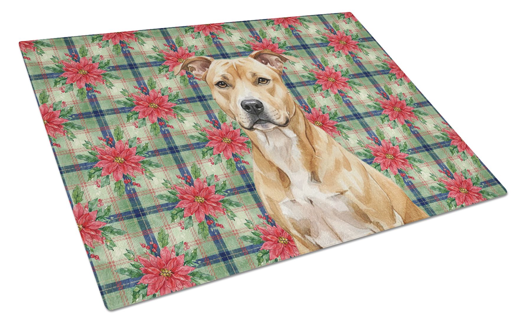Home > Fawn American Staffordshire Terrier Christmas PoinsettIas Glass Cutting Board Decorative Tempered Glass Kitchen Cutting and Serving Board Large Size C