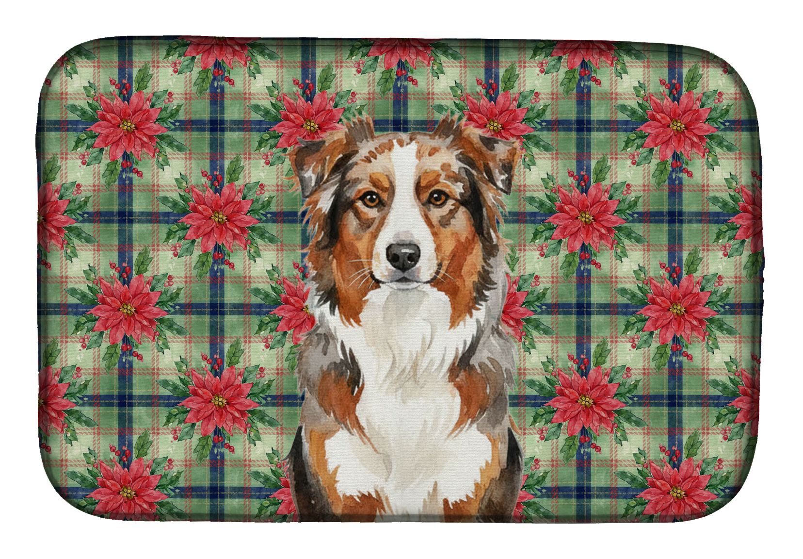 Red Merle Australian Shepherd Christmas PoinsettIas Dish Drying Mat Absorbent Dish Drying Mat Pad for Kitchen Counter Dish Drainer Mat for Countertop