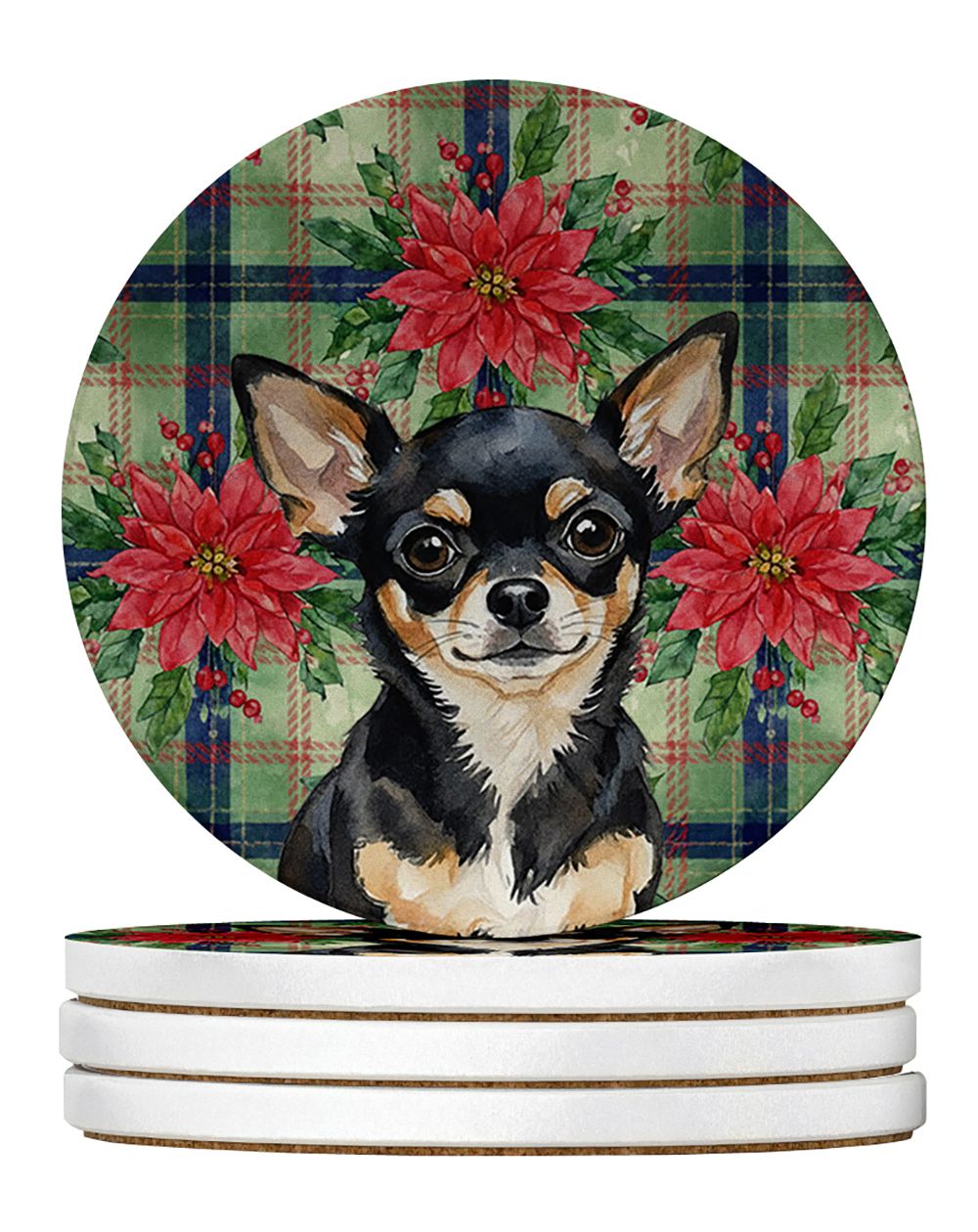 Black and Tan Chihuahua Christmas PoinsettIas Large Sandstone Coasters Pack of 4 Absorbent Round Coasters Decor Gifts for Men or Women, 4 in