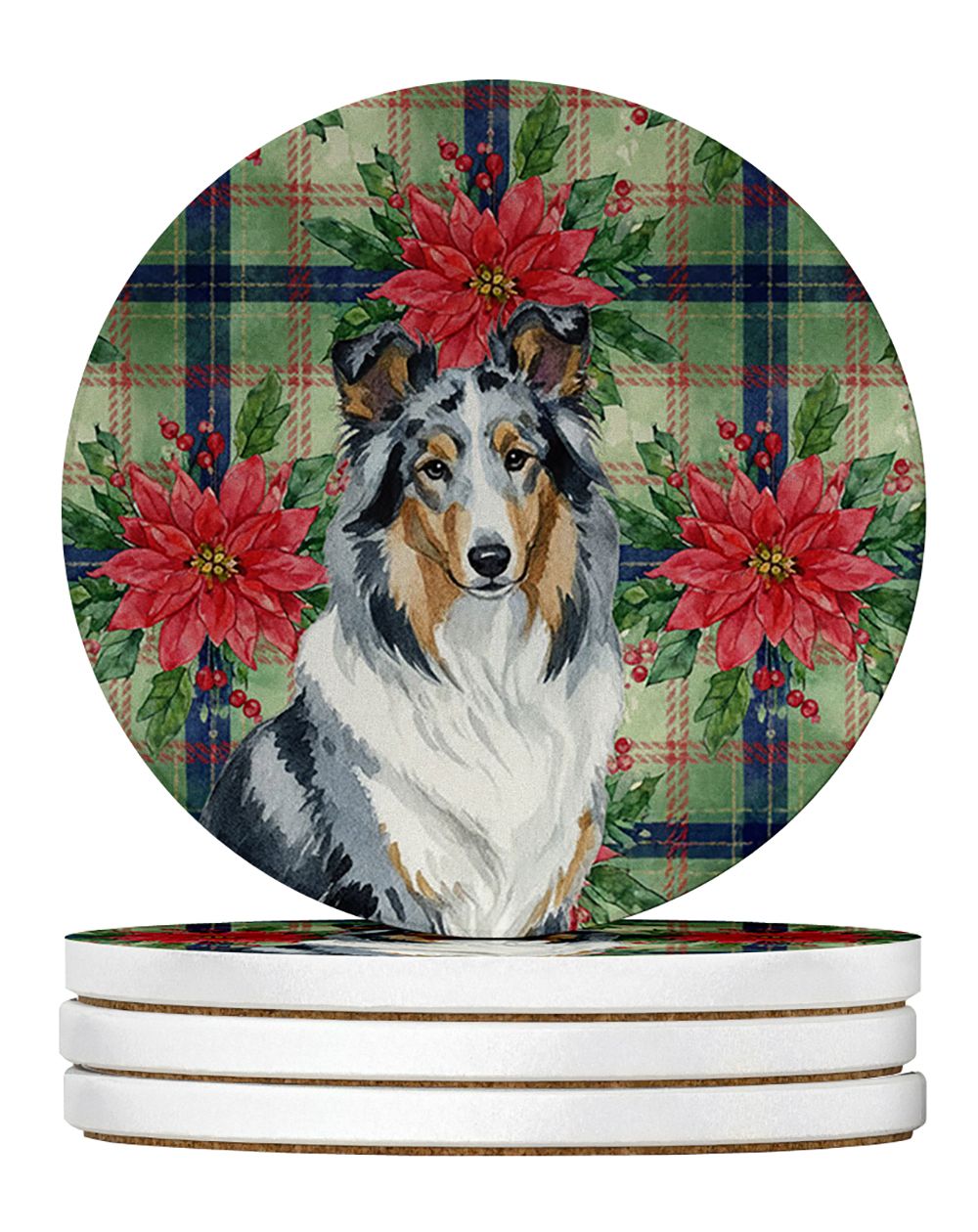 Home > Blue Merle Collie Christmas PoinsettIas Large Sandstone Coasters Pack of 4 Absorbent Round Coasters Decor Gifts for Men or Women, 4 in, Multicolor
